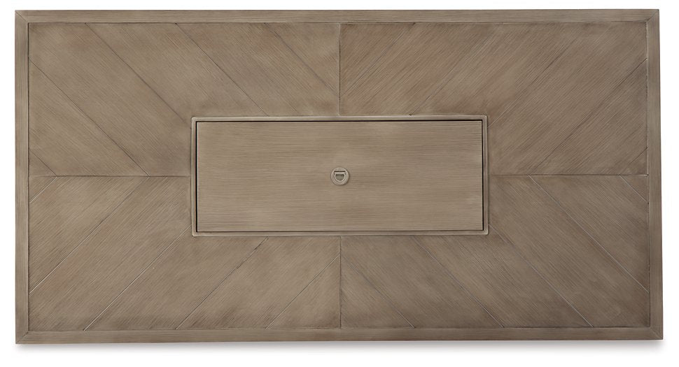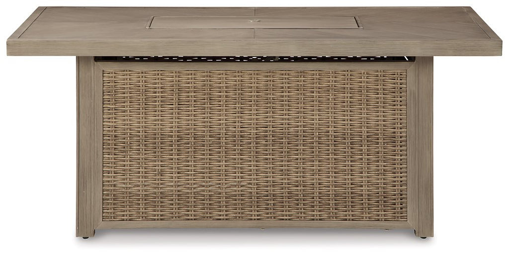Sporting an easy-on-the-eyes look inspired by driftwood, this fire pit table elevates the art of alfresco living. Its chic chevron-patterned top is paired with all-weather resin wicker over rust-proof aluminum for beauty and brawn. Stainless steel burner with glass beads adds a captivating element sure to wow.