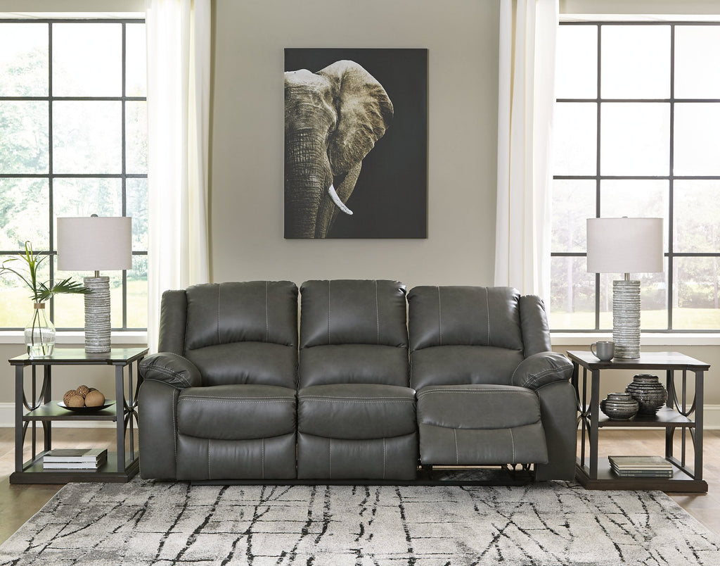 Sleek and streamlined, this power reclining sofa draws out your leisure time with its bustle back construction and thickly cushioned armrests. The super soft faux leather gets a high-end tweak with jumbo contrast stitching so you don’t have to sacrifice style for comfort. Sink into the comfortably supportive cushions and stretch your evening as long as you can with the handy USB port to power your devices.