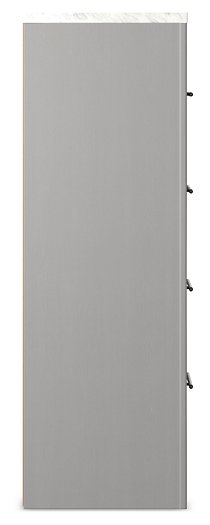 Cool, clean and casually modern. This chest’s wispy dove gray finish and faux Calcutta marble top set the tone for your calming sanctuary. Large linear pulls add dimension and authenticity. Four smooth-gliding drawers neatly accommodate your wardrobe needs.