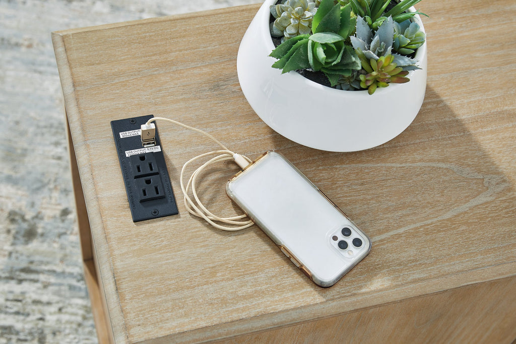 This end table is a simply stunning exhibition of sofa-side function. Your daily routines are upgraded with USB charging and a handy pull-out tray to keep remotes and beverages close at hand. Seeking extra storage? This table is ready to accommodate. Intentionally made for casual lifestyles, it’s an instant everyday essential.