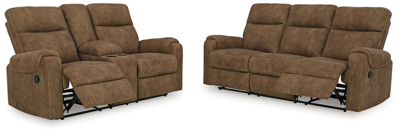 This seating package is your best shot for comfort and total relaxation. Its super soft faux leather, contemporary bustle back and contrast stitching team up for a big win with most any color scheme and room decor. With the pull tab reclining motion, you're on your way to endless relaxation at home solo or when hosting friends.