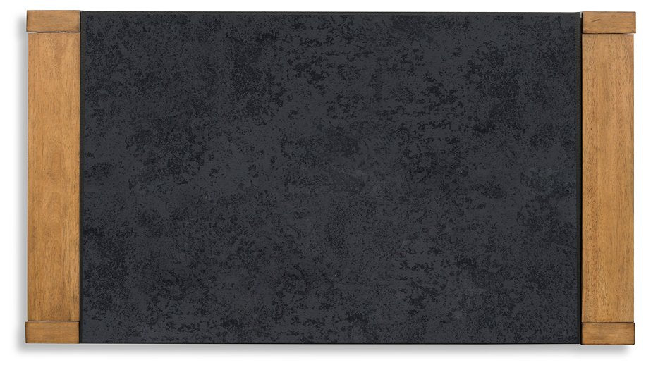 The Quentina occasional table package simplifies any occasion in fine style. Clean lines and natural wood-tone legs make it endlessly versatile. The set's faux stone melamine laminate tops are durable and waterproof—a clever blend of form and function.