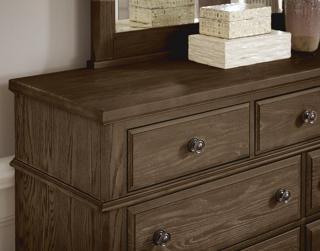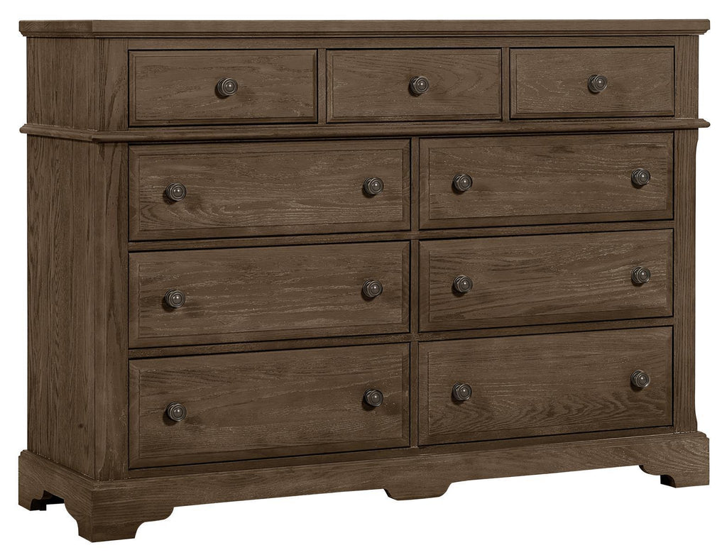 Heritage Collection by Vaughan-Bassett Furniture Cobblestone Oak finish Solid cherry and birch veneers 9 Drawers Bracket feet
